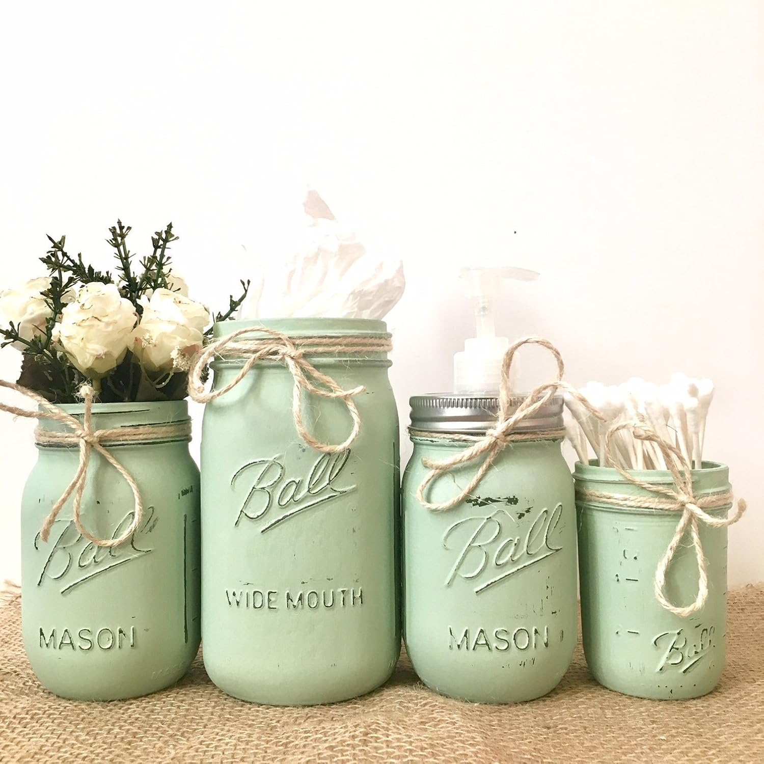 Bathroom decor hacks that will help you get your stuff. This décor would be a great way to upcycle useless jars creatively and productively. Making your own mason jar bathroom set is not a difficult task when you have your cricut maker. Mason jar bathroom set great gift for yourself or depop. ✅this mason storage jars are an attractive way to organize items like cotton swabs, cotton balls, flossers,bath salts,hair bands,or any other bathroom. Home width=570″ height=570″] painted mason jars. The set pictured is done in vintage chalk paint. Eternal angel rustic wall sconces decoration hanging mason jar lights home decor with remote control white peony flower strip. Whether you're decorating an apartment, setting up an etsy backdrop, or showcasing your here are 45+ mason jar wall decor ideas that showcase the true creative power of these iconic vintage canning jars. Find many great new & used options and get the best deals for mason jar bathroom set of 4 at the best online prices at ebay! I enjoy creating new uncomplicated recipes, browsing pinterest for the latest in home decor trends, reading. What a cute idea for reception decor! .379″] mason jar bathroom set mint green shabby chic soap img0.etsystatic.com.